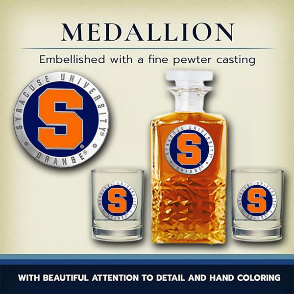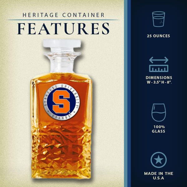 PERFECT GIFT FOR ANY NCAA FAN – This Heritage Decanter chest set is a perfect gift for a student, new grad, or a lifelong fan. This themed box set contains a 25-ounce glass decanter with two 14-ounce double old-fashioned glasses embellished with your favorite NCAA logo. This box set is a classy gift for the holidays and any occasion, complete with a rustic wooden chest.