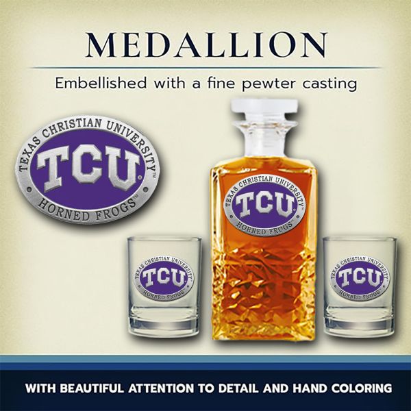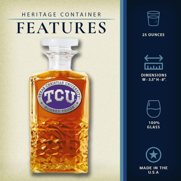 Texas Christian University - Horned Frogs - Heritage Decanter with 2 Double Old Fashioned Glasses in Chest