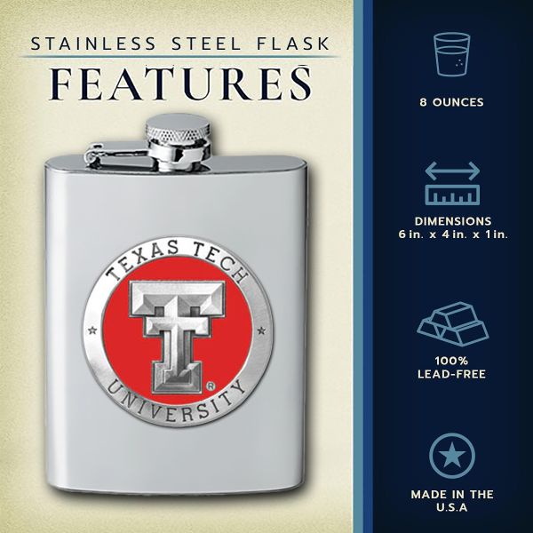 • PERFECT GIFT FOR ANY NCAA FAN -This 8-ounce flask is made from 100% stainless steel and features an intricate Fine Pewter casting--makes a great gift, especially for groomsmen! These flasks are lightweight and easy-to-clean and feature an attached cap that can't be lost or misplaced.