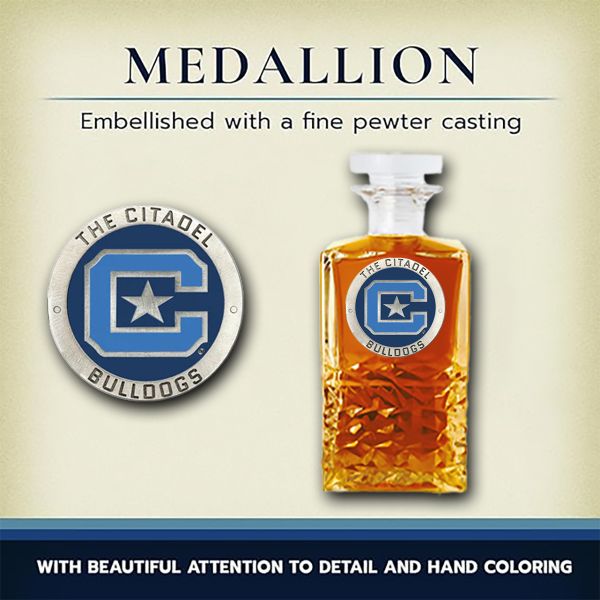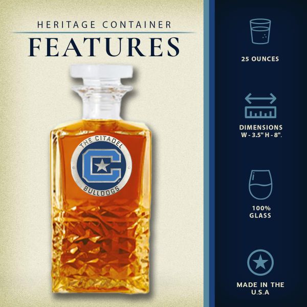 • CELEBRATE YOUR NCAA TEAM - This 25-ounce glass decanter is embellished with a fine pewter casting. Match it with two Double Old-Fashioned glasses (Sold Separately). A great addition to any home bar! Made in USA.