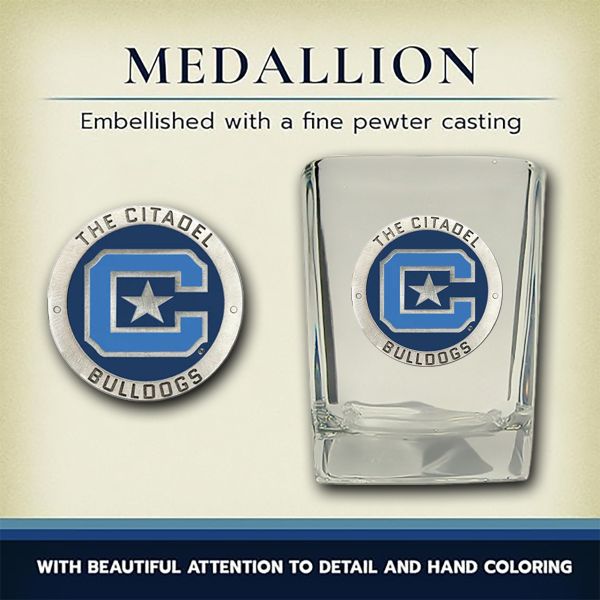 This 4-ounce square shot glass is adorned with a hand-sculpted, highly detailed Fine Pewter casting and features a heavy base for durability. These look great displayed as part of a collection, or featured in your home bar.