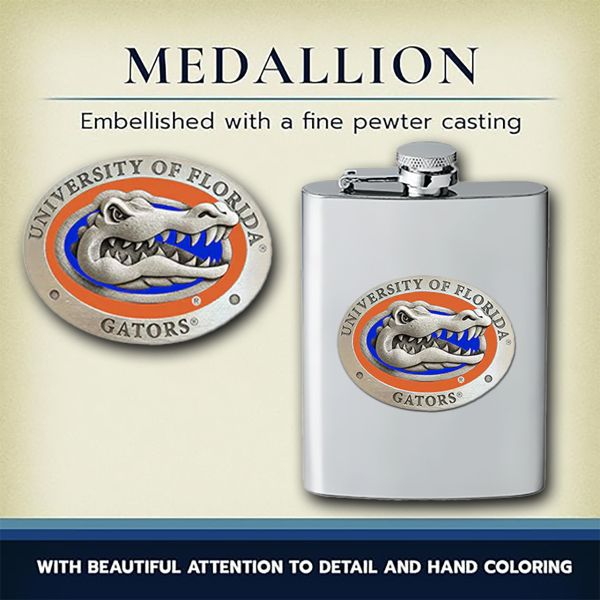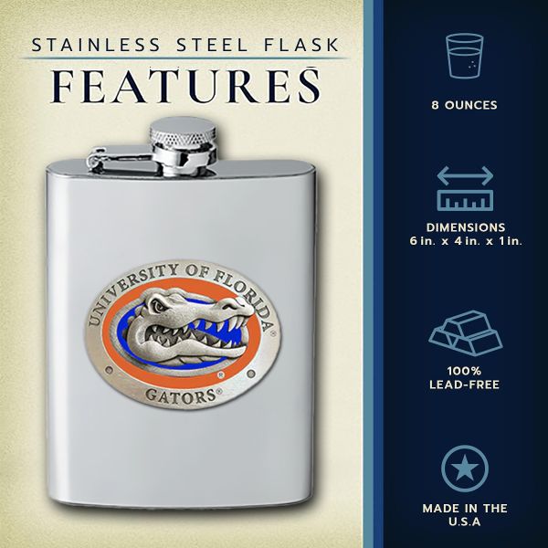 • PERFECT GIFT FOR ANY NCAA FAN -This 8-ounce flask is made from 100% stainless steel and features an intricate Fine Pewter casting--makes a great gift, especially for groomsmen! These flasks are lightweight and easy-to-clean and feature an attached cap that can't be lost or misplaced.