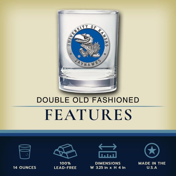 • CELEBRATE YOUR NCAA TEAM - This 25-ounce glass decanter is embellished with a fine pewter casting. Comes with two Double Old-Fashioned glasses. A great addition to any home bar! Made in USA.