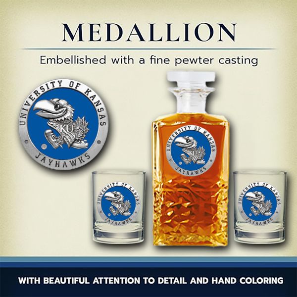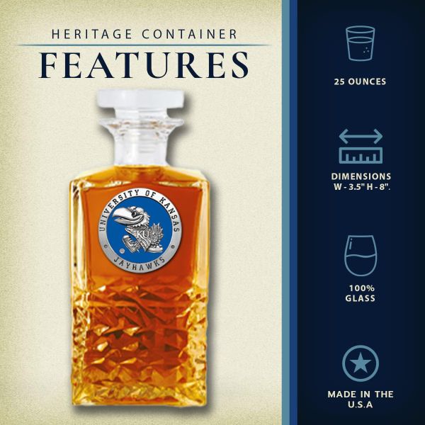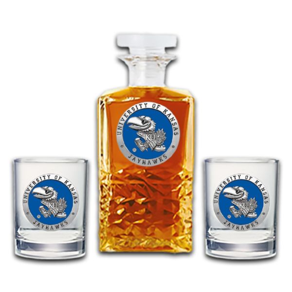 University of Kansas Jayhawks - Heritage Decanter with 2 Old Fashioned Glasses