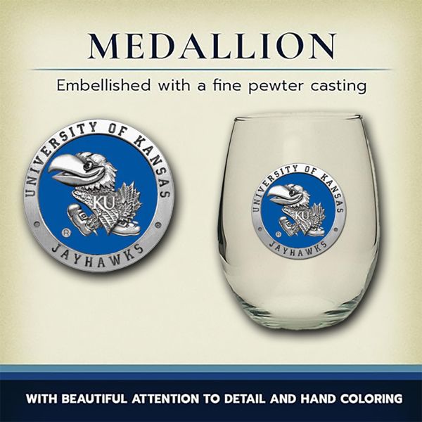 University of Kansas Jayhawks - Stemless Wine Goblet 12oz Set of 2