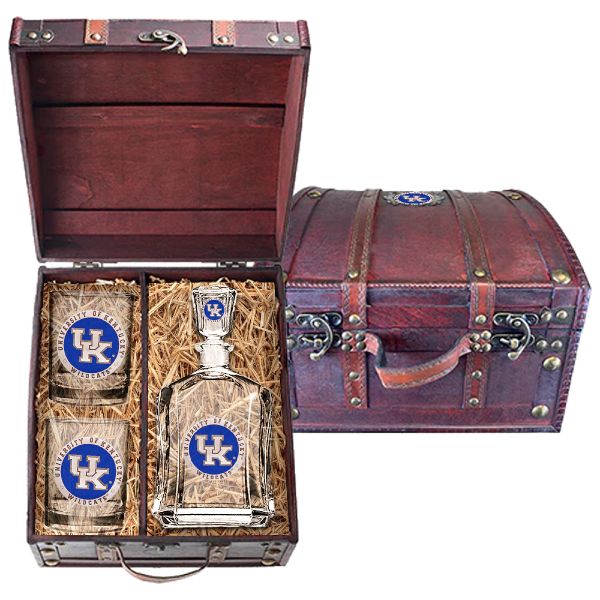 University of Kentucky - Capitol Decanter with 2 Double Old Fashioned Glasses in Chest