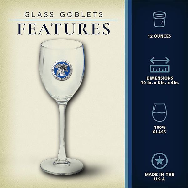 This Wine Chest Set comes with 2 - 12 oz Stemmed Goblets with a pewter medallion bonded to it, a double-wall insulated stainless steel chiller also with a pewter logo medallion bonded to the front.