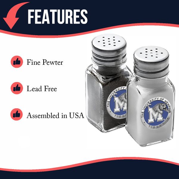 • CELEBRATE YOUR NCAA TEAM - This is a set of salt & pepper shakers with a fine pewter logo medallion of your NCAA team bonded to the side. Made in USA. Heritage Pewter has been hand-crafting fine pewter gifts since 1988. We offer an array of pewter products, ranging from barware to wind chimes, golf clubs to coffee mugs.