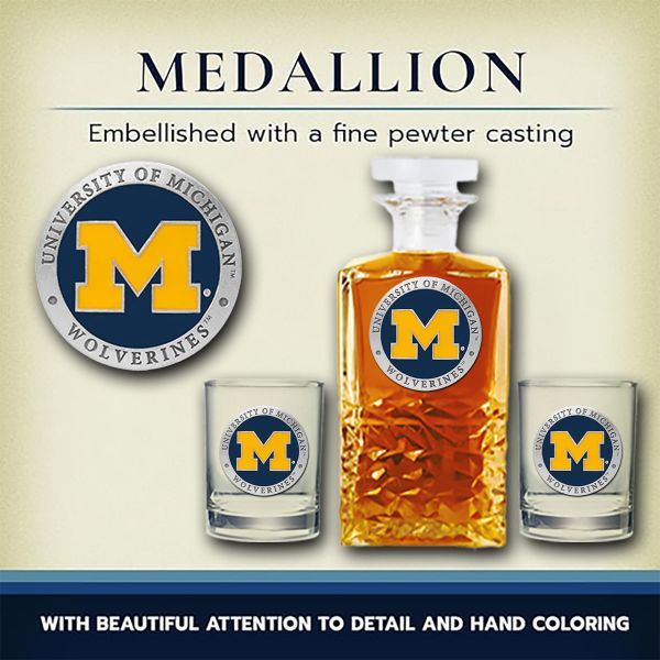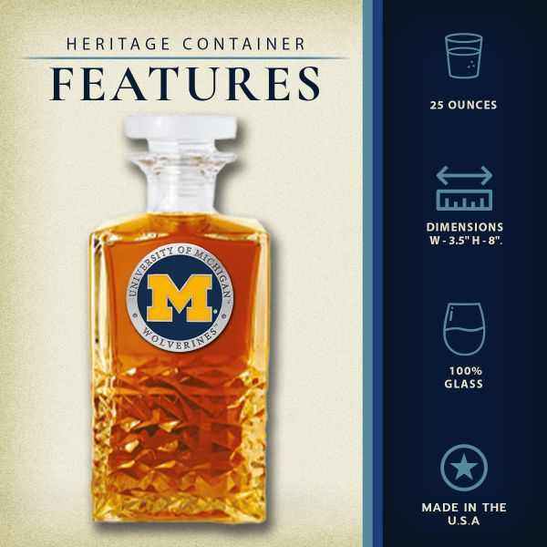 University of Michigan Wolverines - Heritage Decanter with 2 Old Fashioned Glasses