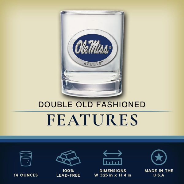 University of Mississippi - Ole Miss Blue - Double Old Fashioned Glass