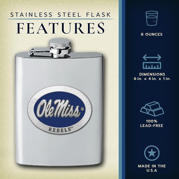 University of Mississippi - Ole Miss Blue - Stainless Steel Flask