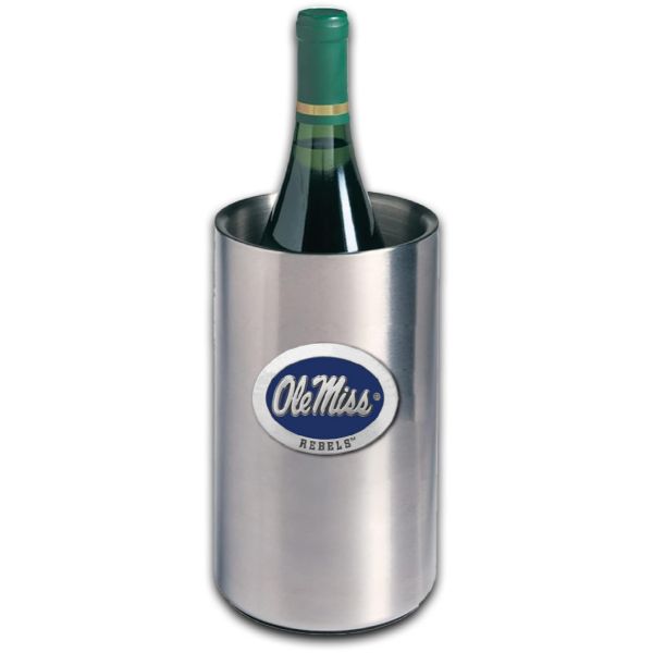 This Wine Chest Set comes with 2 - 12 oz Stemmed Goblets with a pewter medallion bonded to it, a double-wall insulated stainless steel chiller also with a pewter logo medallion bonded to the front.