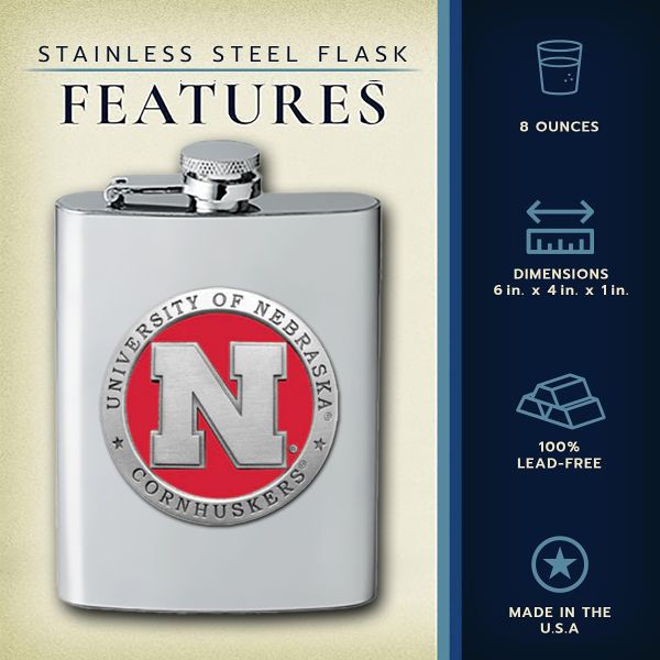University of Nebraska Cornhuskers - Stainless Steel Flask