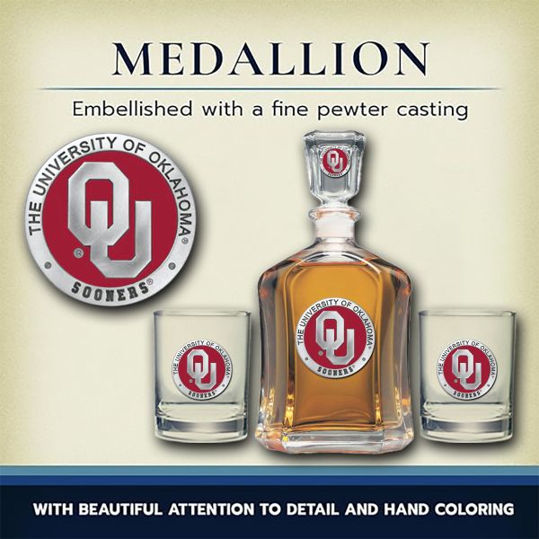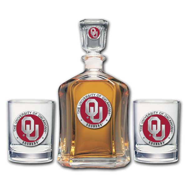 University of Oklahoma Sooners - Capitol Decanter with 2 Double Old Fashioned Glasses