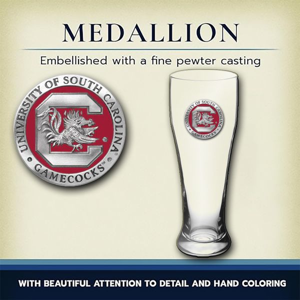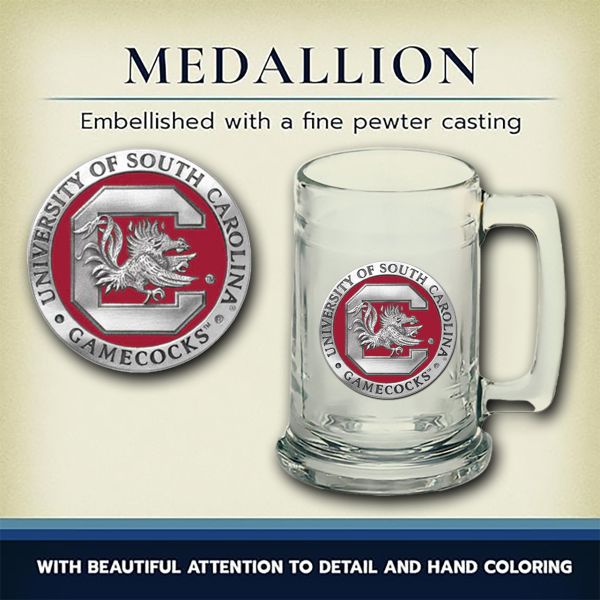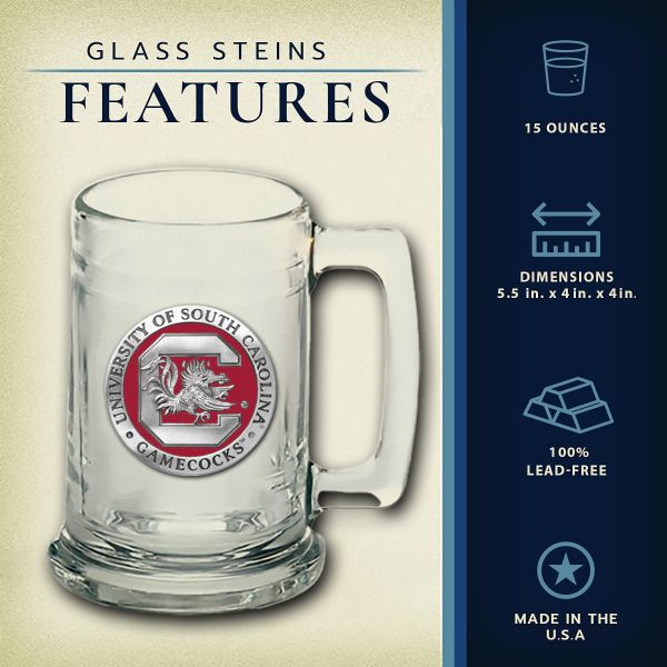 The Beer Chest Set comes with 2 - 20oz glass pilsners and 2 - 15oz glass steins. Each have a pewter medallion of your favorite NCAA team embellished to it.