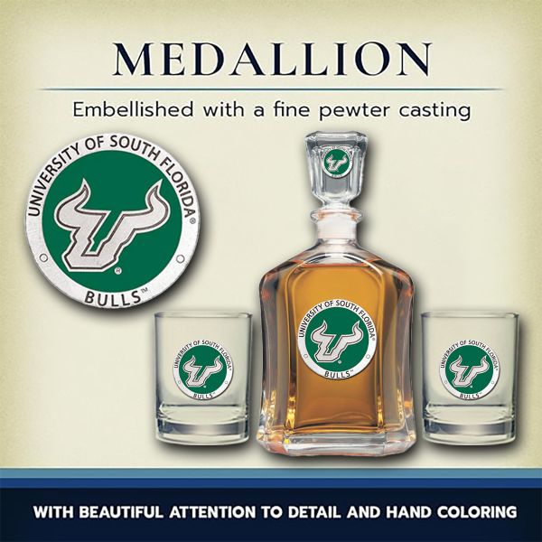 University of South Florida Bulls - Capitol Decanter with 2 Double Old Fashioned Glasses