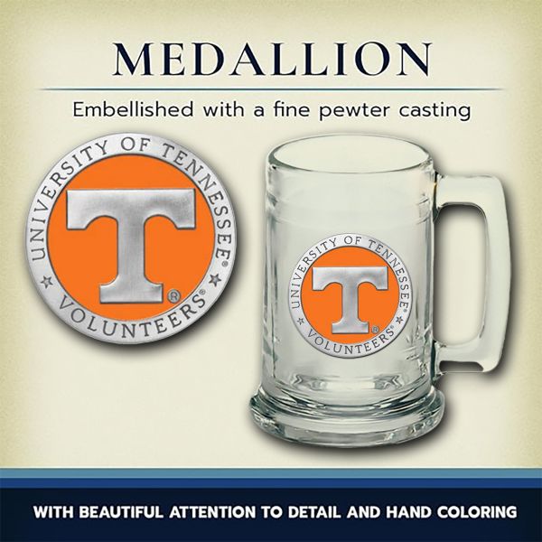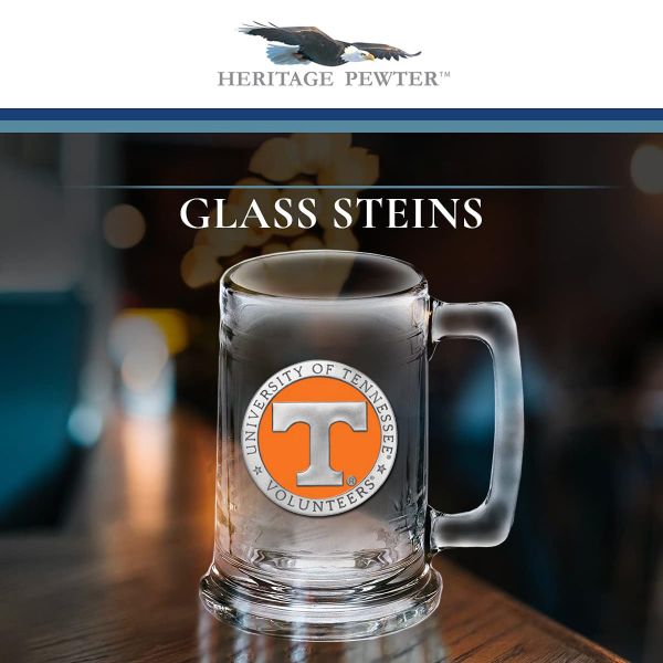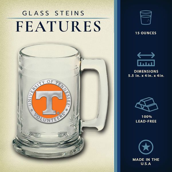 The Beer Chest Set comes with 2 - 20oz glass pilsners and 2 - 15oz glass steins. Each have a pewter medallion of your favorite NCAA team embellished to it.