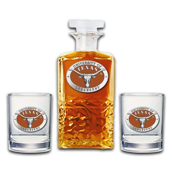 PERFECT GIFT FOR ANY NCAA FAN – This Heritage Decanter chest set is a perfect gift for a student, new grad, or a lifelong fan. This themed box set contains a 25-ounce glass decanter with two 14-ounce double old-fashioned glasses embellished with your favorite NCAA logo. This box set is a classy gift for the holidays and any occasion, complete with a rustic wooden chest.