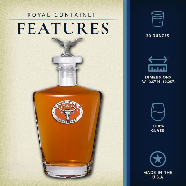University of Texas Longhorns Royal Decanter with 3D Topper