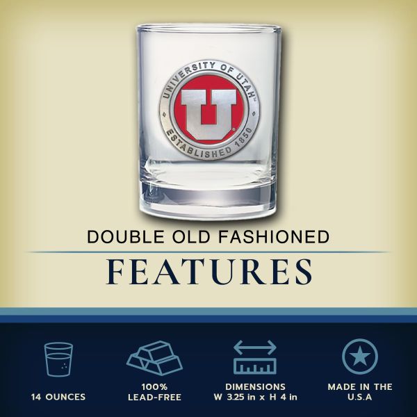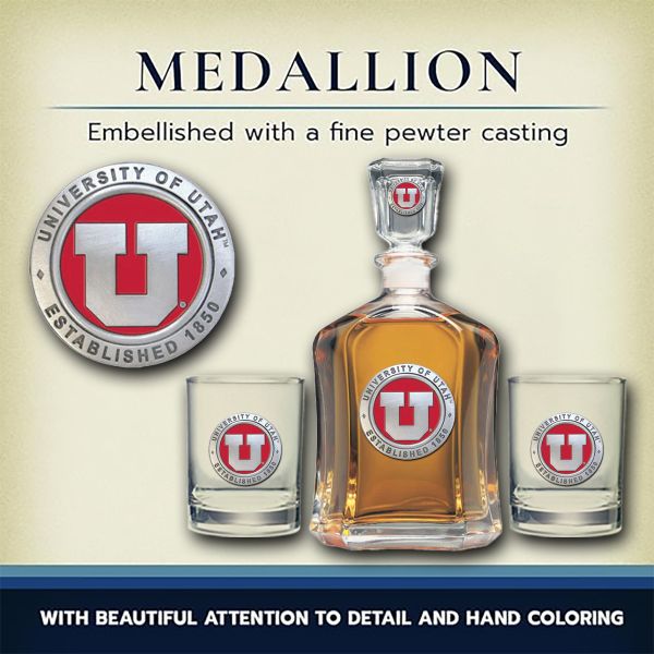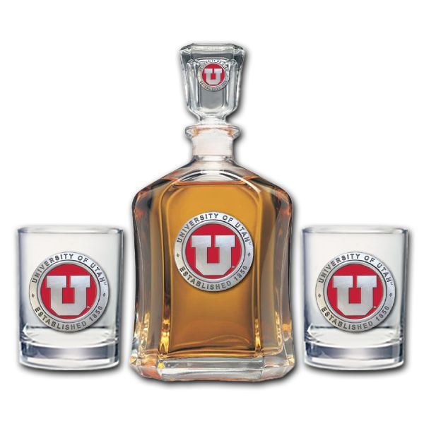 University of Utah - Capitol Decanter with 2 Double Old Fashioned Glasses