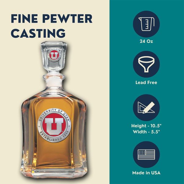 • PERFECT GIFT FOR ANY NCAA FAN - This 24-ounce glass decanter is embellished with a fine pewter casting. Comes paired with two Double Old-Fashioned glasses within a decorative chest with a pewter medallion with your favorite NCAA team. A great addition to any home bar! Made in USA.