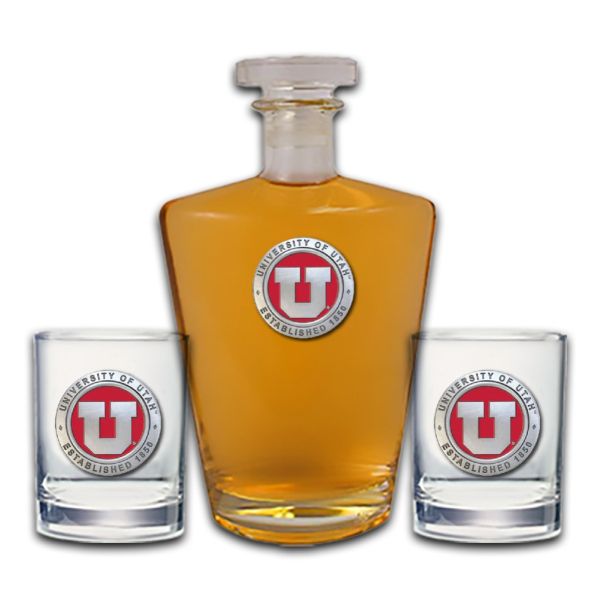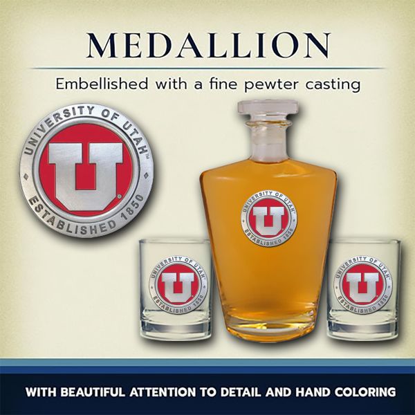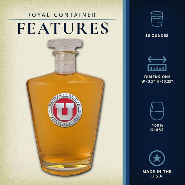 This 30-ounce glass container is embellished with a hand-sculpted, highly detailed Fine Pewter casting making our Royal Container a great addition to any fan's collection. Comes paired with two Double Old-Fashioned glasses. Made in USA.