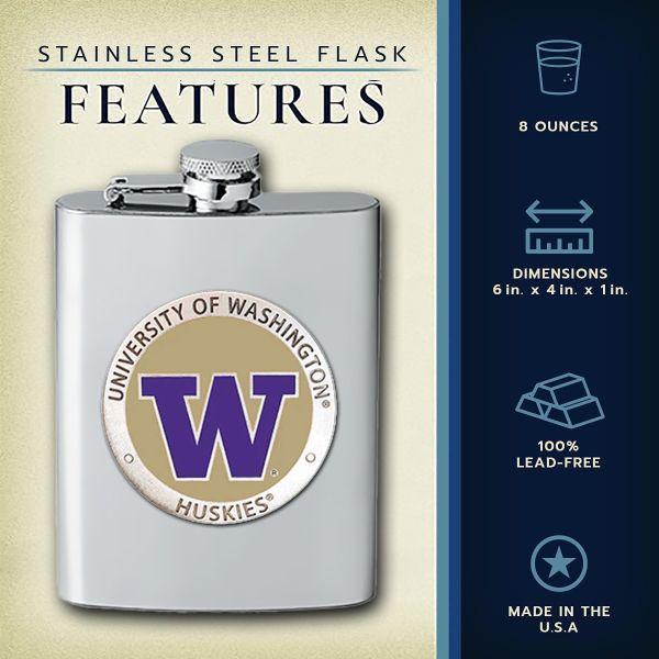 • PERFECT GIFT FOR ANY NCAA FAN -This 8-ounce flask is made from 100% stainless steel and features an intricate Fine Pewter casting--makes a great gift, especially for groomsmen! These flasks are lightweight and easy-to-clean and feature an attached cap that can't be lost or misplaced.