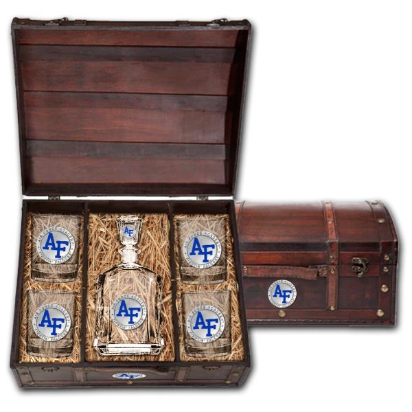 US Air Force Academy - Capitol Decanter with 4 Double Old Fashioned Glasses in Chest