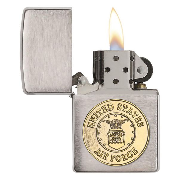 This Brushed Chrome windproof lighter has the United States Air Force™ emblem attached to it. Comes packaged in a gift box. For optimal performance, fill with Zippo lighter fuel.