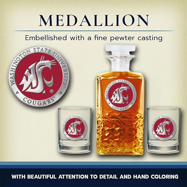 Washington State University Cougars - Heritage Decanter with 2 Double Old Fashioned Glasses in Chest