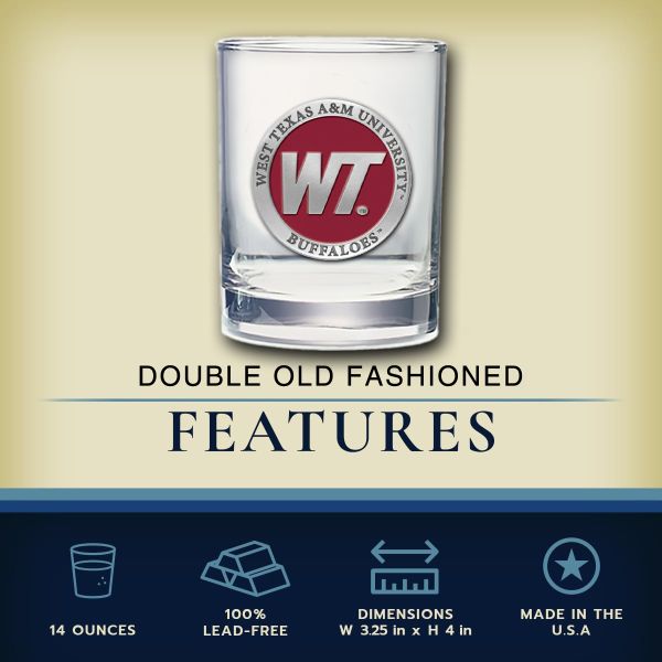 West Texas A&M University Buffaloes - Royal Decanter with 2 Double Old Fashioned Glasses