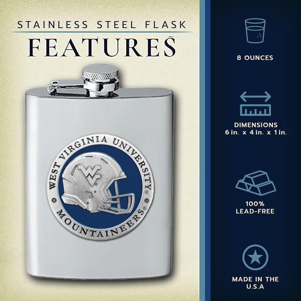 West Virginia University Mountaineers Helmet - Stainless Steel Flask