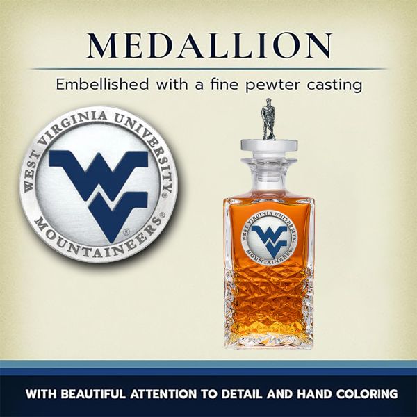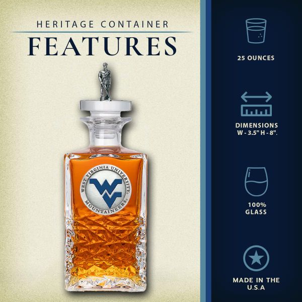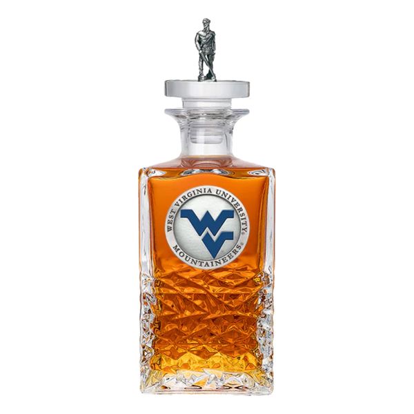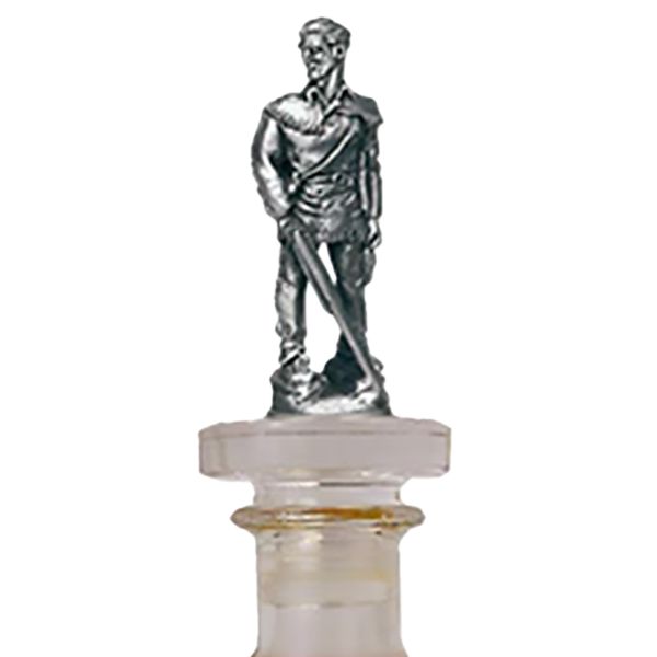 This 25-ounce glass decanter is embellished with a fine pewter casting and a 3-dimensional figure on top. It is match it with two Double Old-Fashioned glasses. A great addition to any home bar! Made in USA.