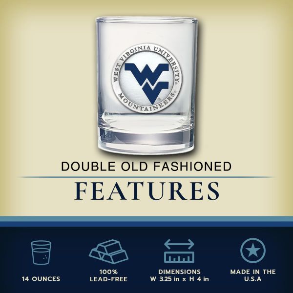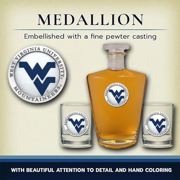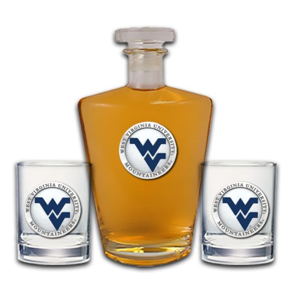 West Virginia University Mountaineers - Royal Decanter with 2 Double Old Fashioned Glasses