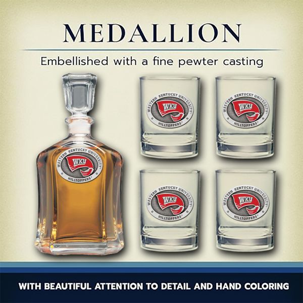 Western Kentucky University Hilltoppers - Capitol Decanter with 4 Double Old Fashioned Glasses in Chest